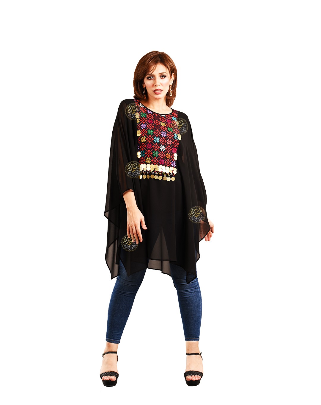premium-quality chiffon, featuring luxurious handmade Aida fabric. It is