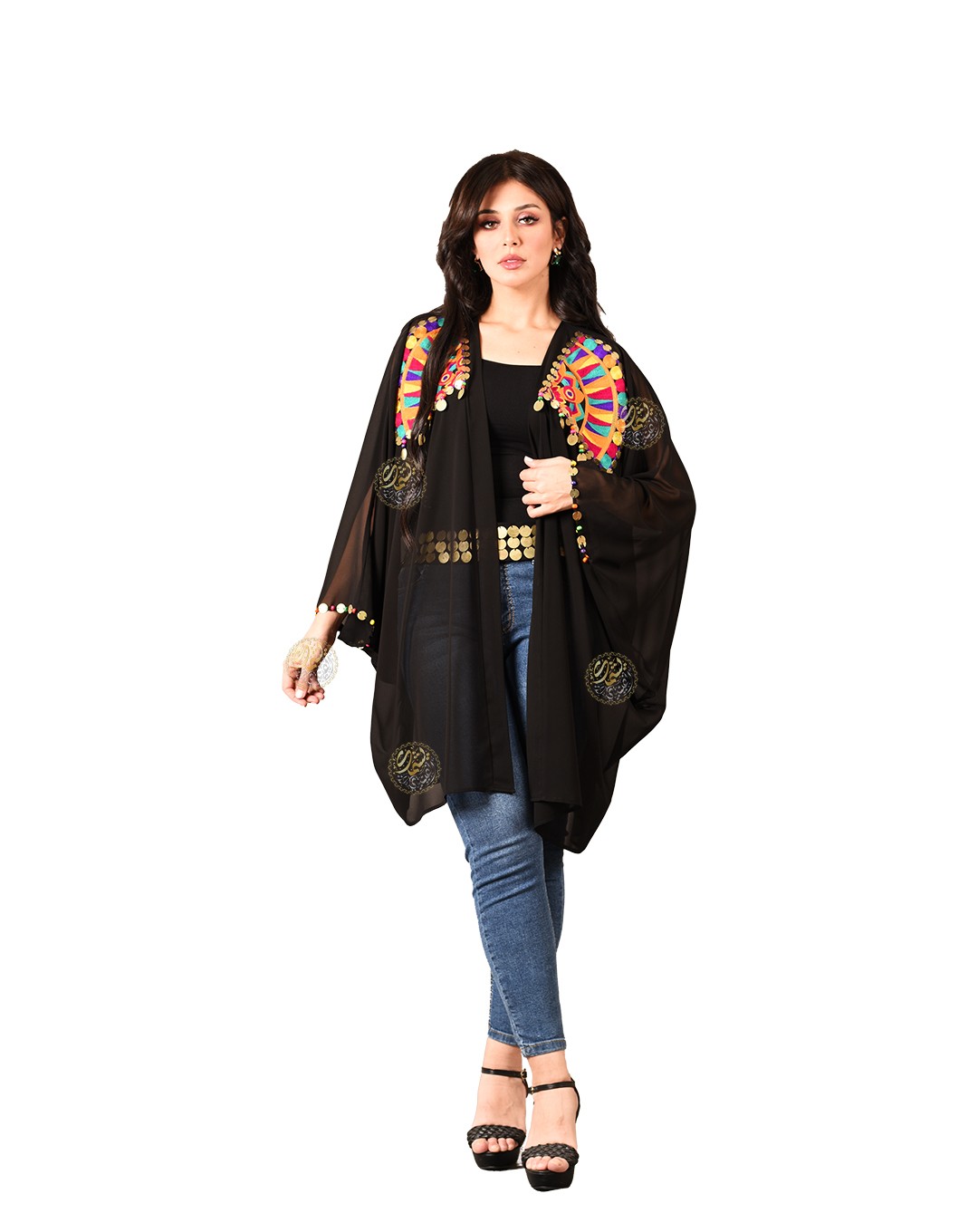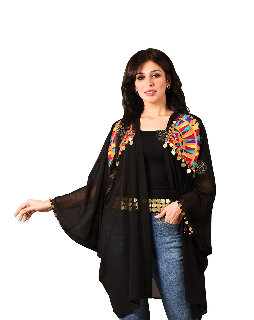 luxurious chiffon fabric, embellished with Eastern heritage accents and