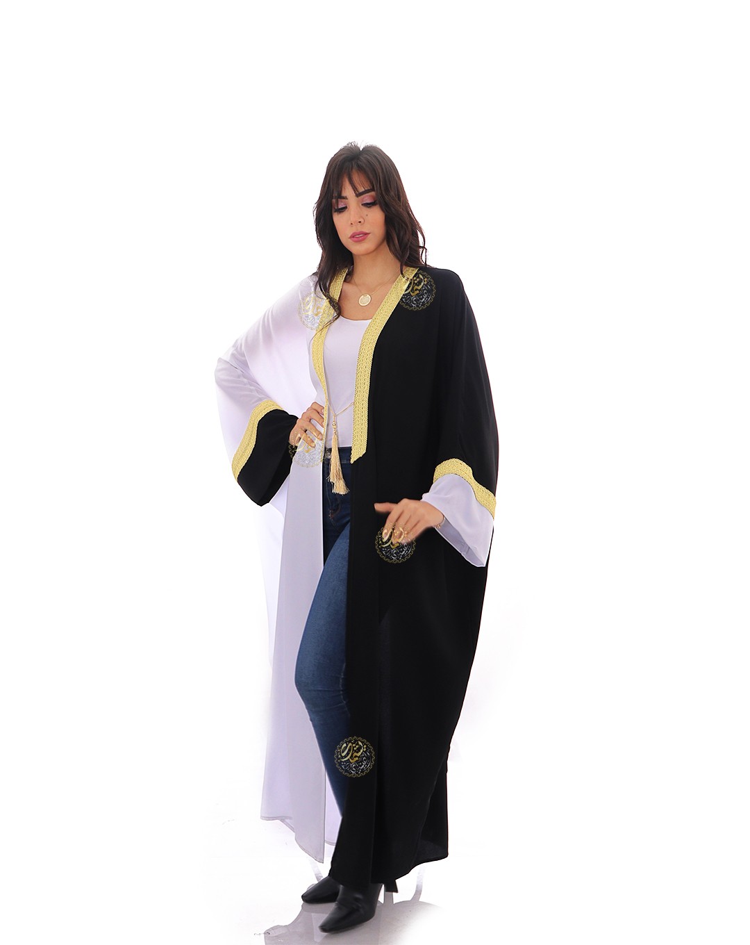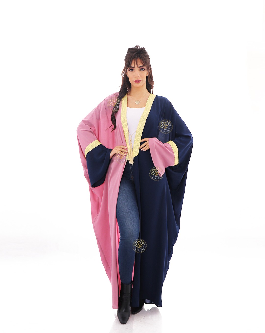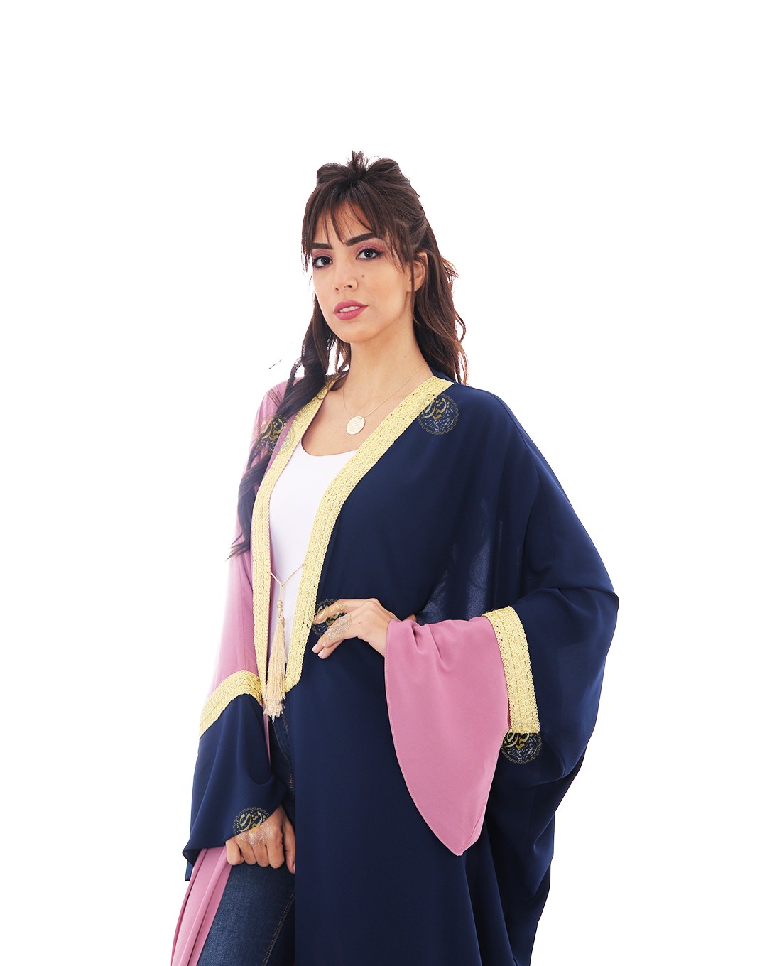 A unique and simple design, combining the beautiful royal crepe colors with elegant embroidery using golden silk threads. A stylish and perfect design for all occasions. Available in one size (Free Size) to fit all body types.