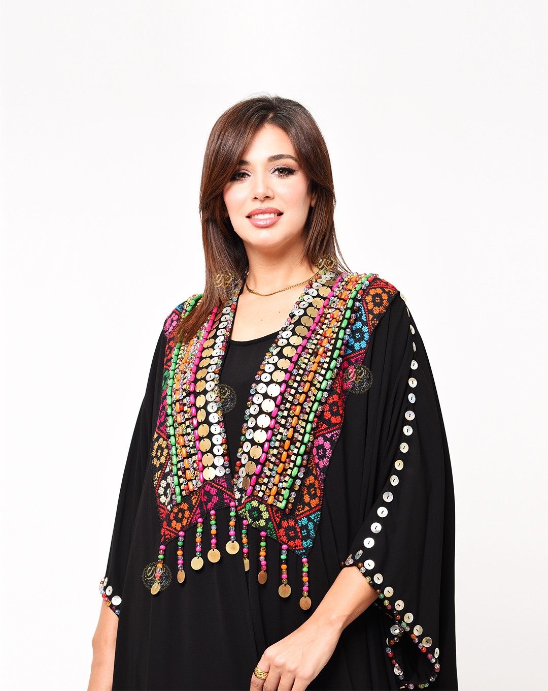 sequins, and fully hand-embroidered with brass, colorful beads, and gypsy