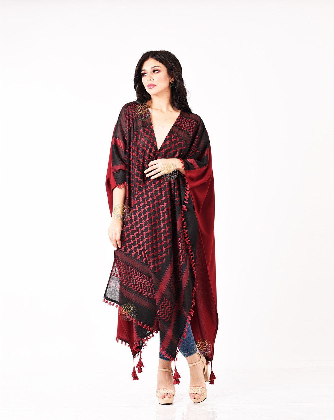 keffiyeh blended with royal crepe fabric in the same shade, featuring a