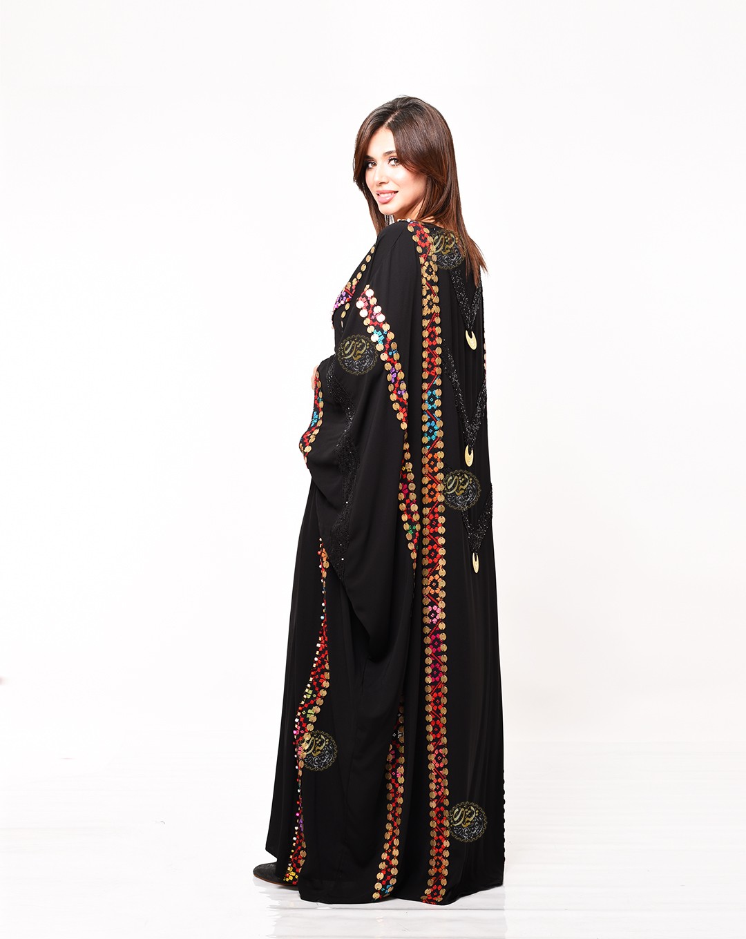embellished with pleated sequins and handmade etamine, and hand-embroidered