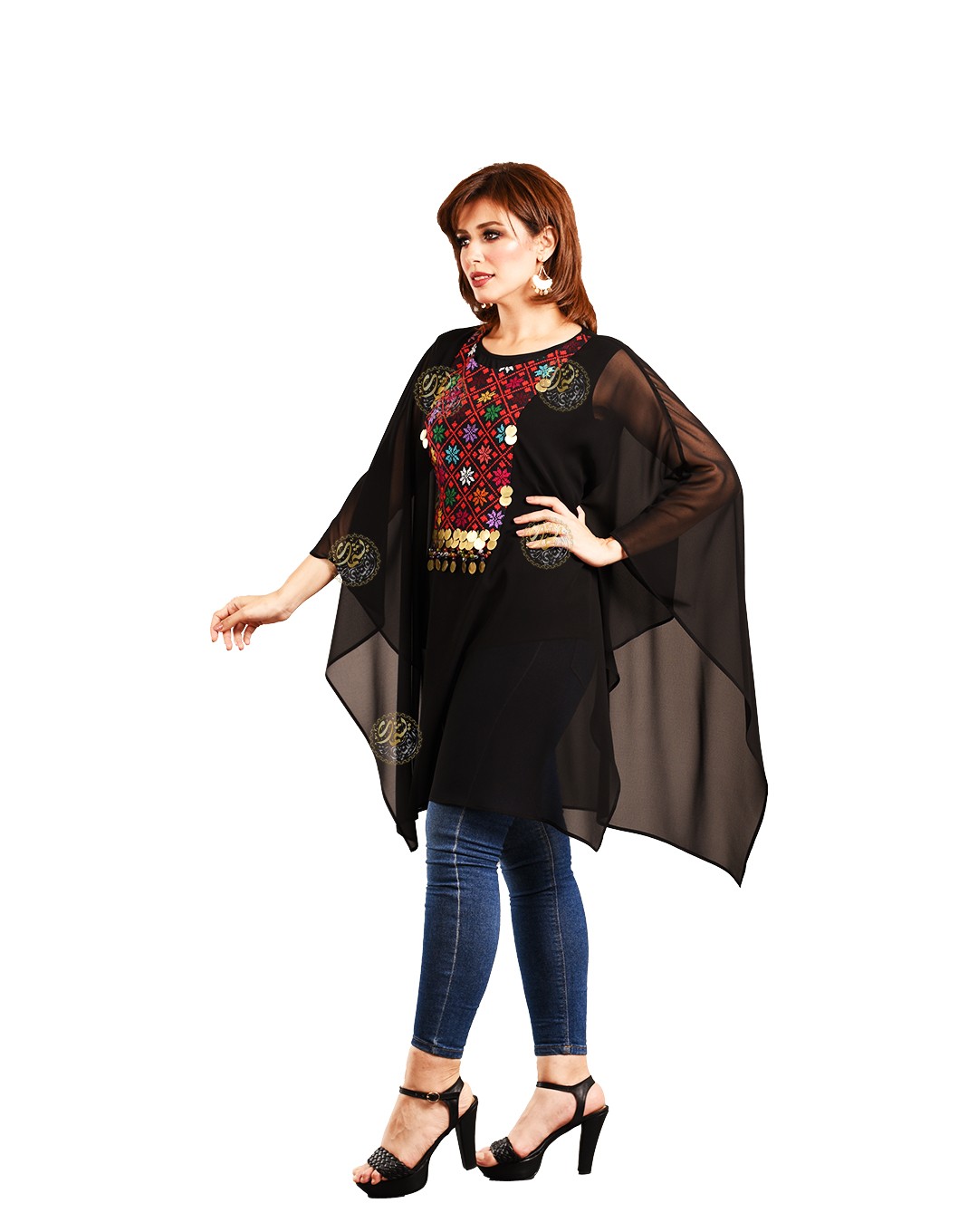 premium-quality chiffon, featuring luxurious handmade Aida fabric. It is