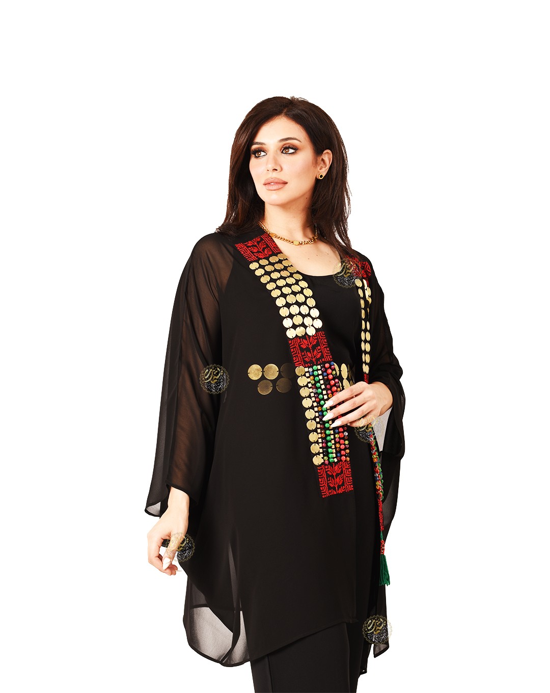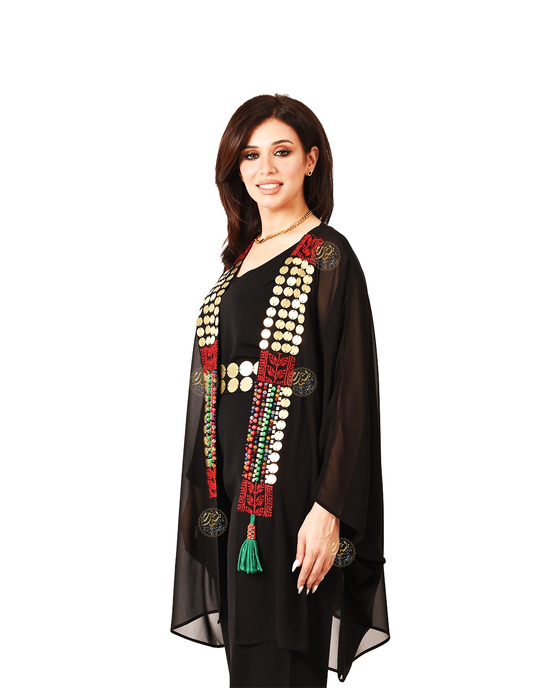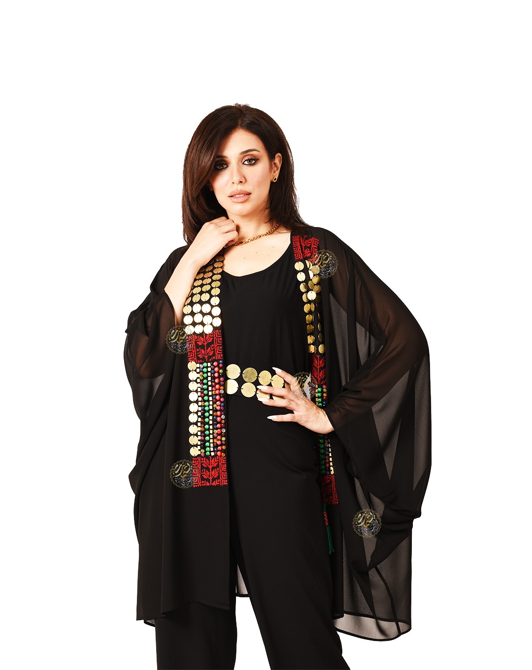 crafted from premium royal crepe, a stylish belt, and a stunning chiffon