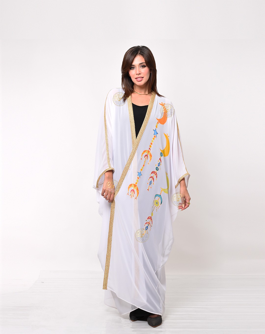 from premium chiffon, it is adorned with stunning hand-painted Ramadan-inspired