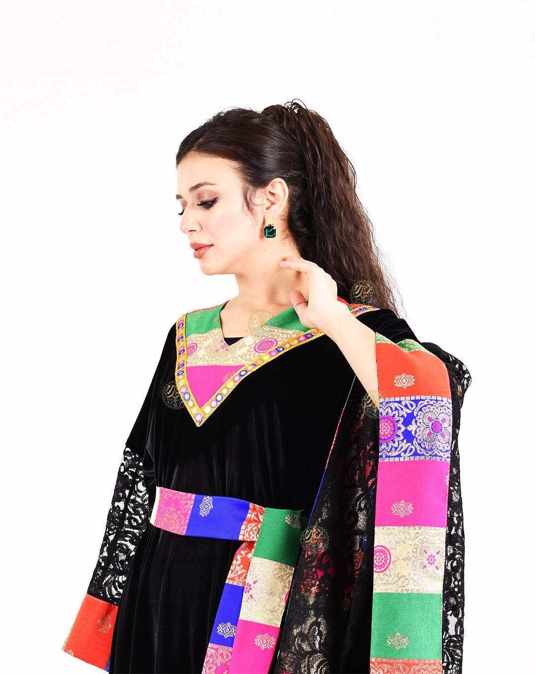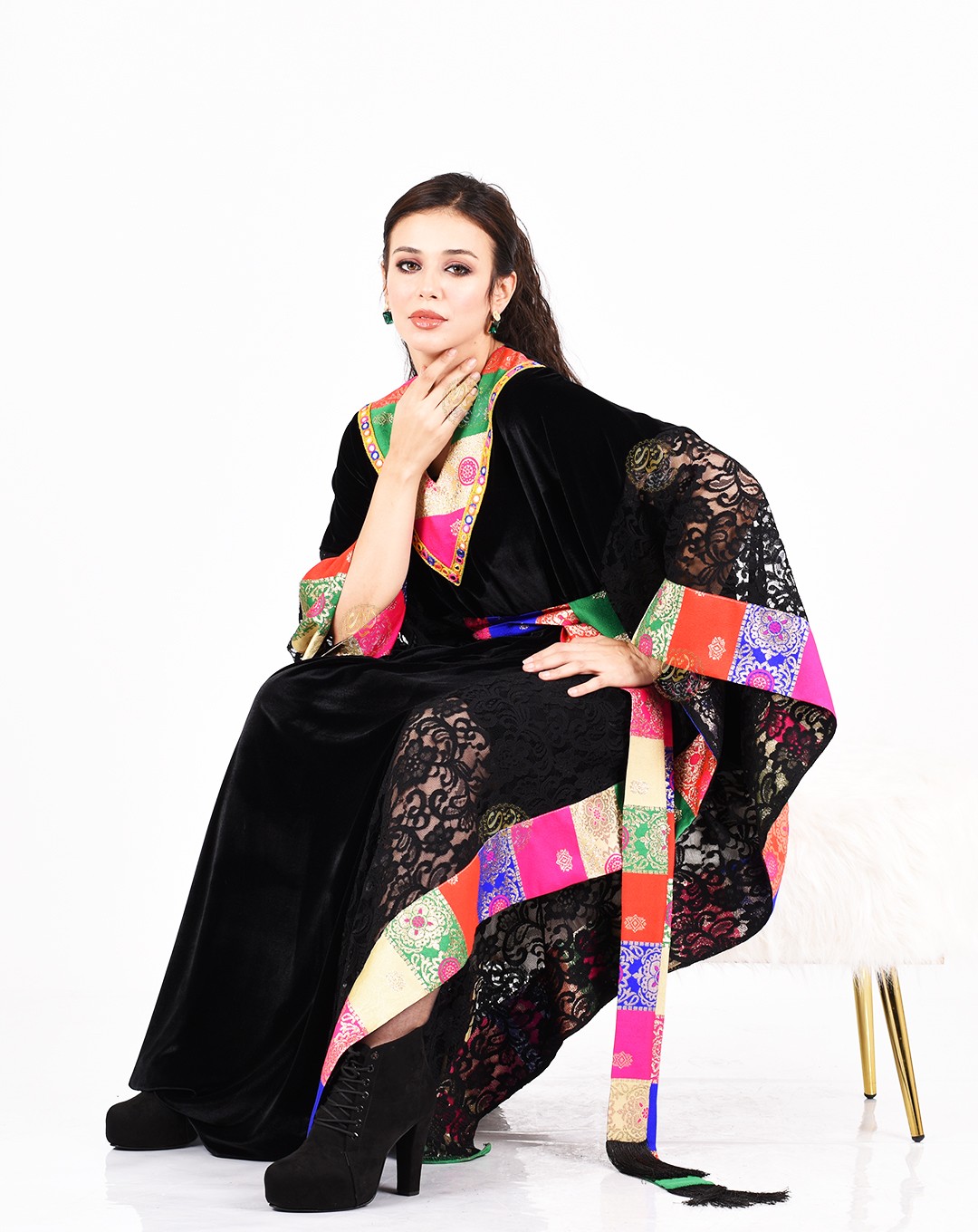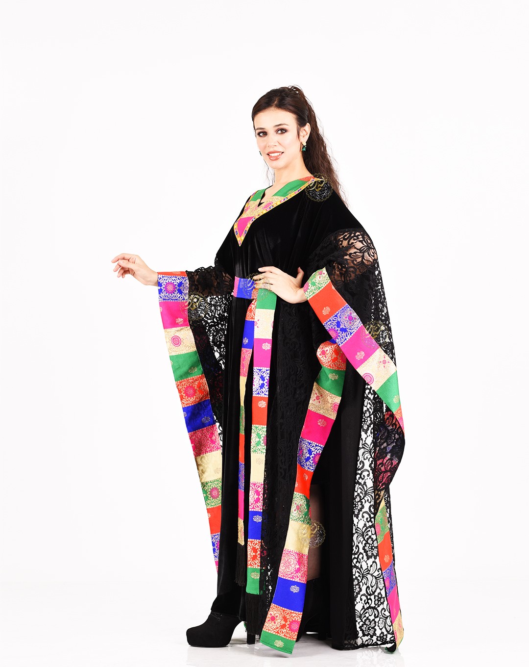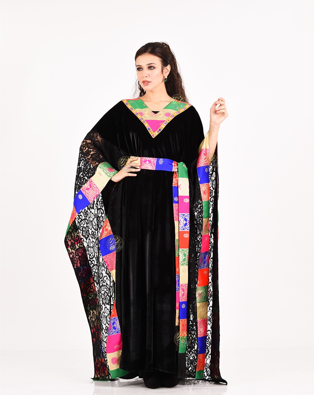 A luxurious black Korean velvet kaftan