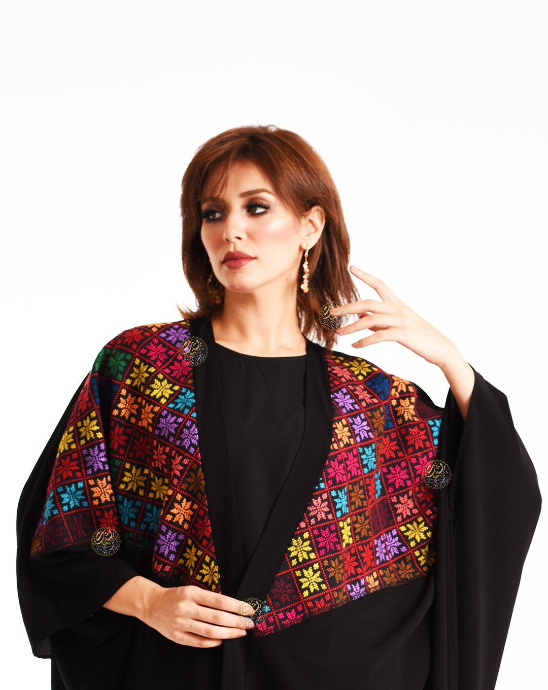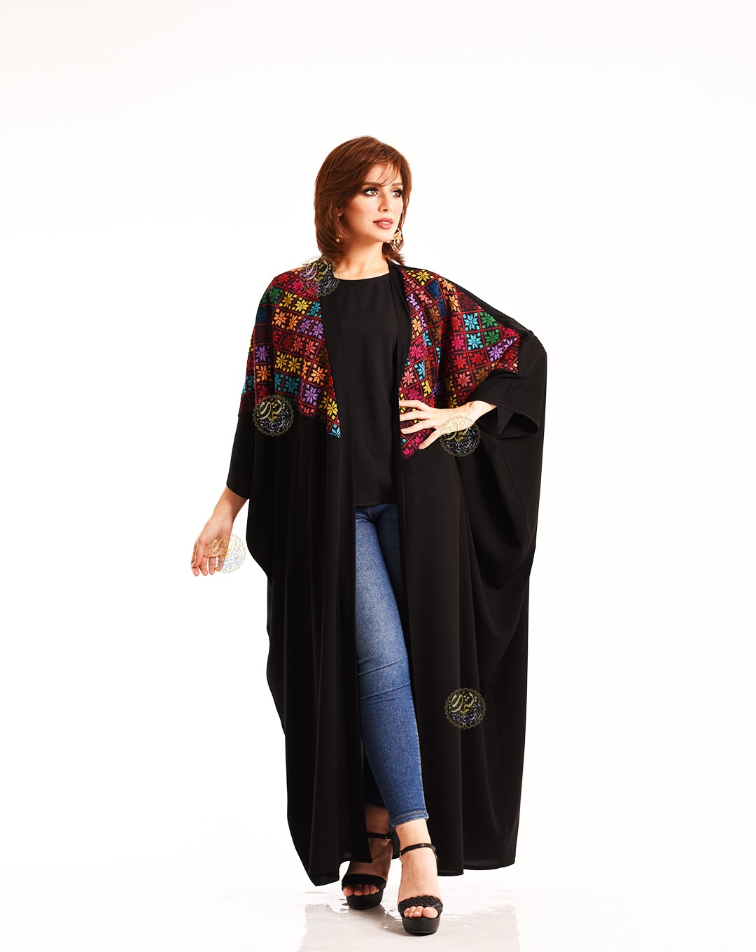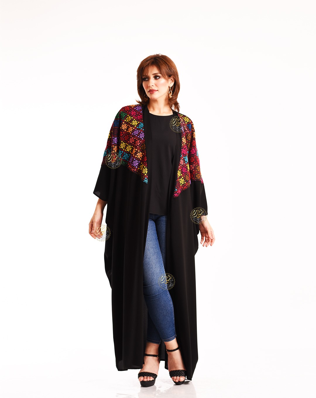 A unique and simple design, made from the finest royal crepe, and embellished with handmade Sinai etamine. An elegant and refined design, perfect for all occasions. Available in one size (Free Size) to fit all body types.