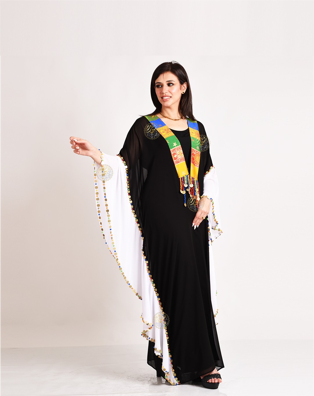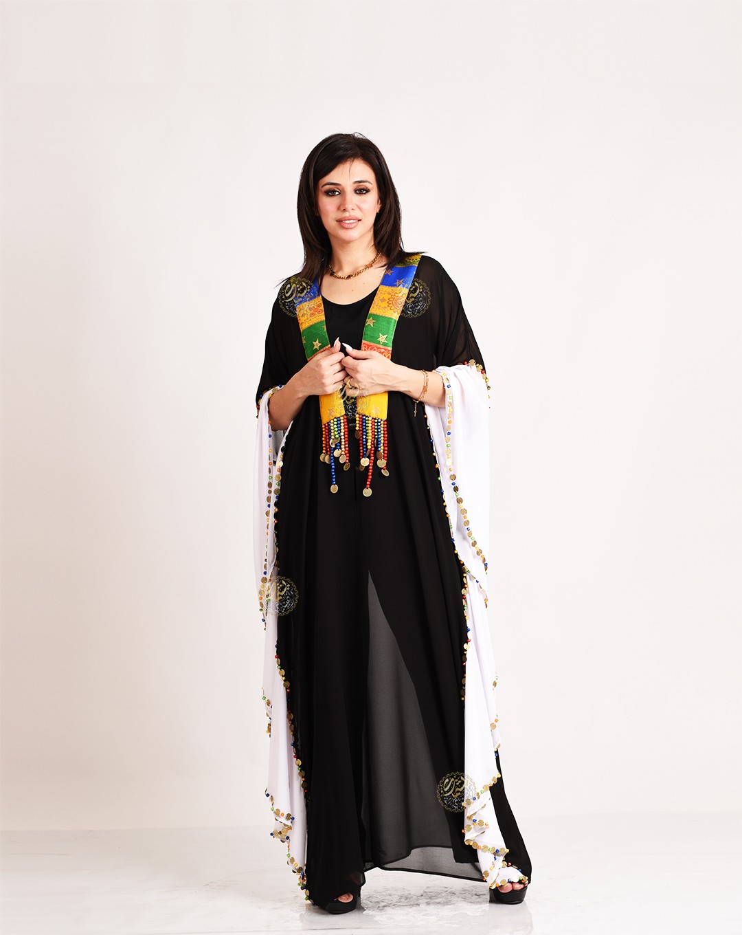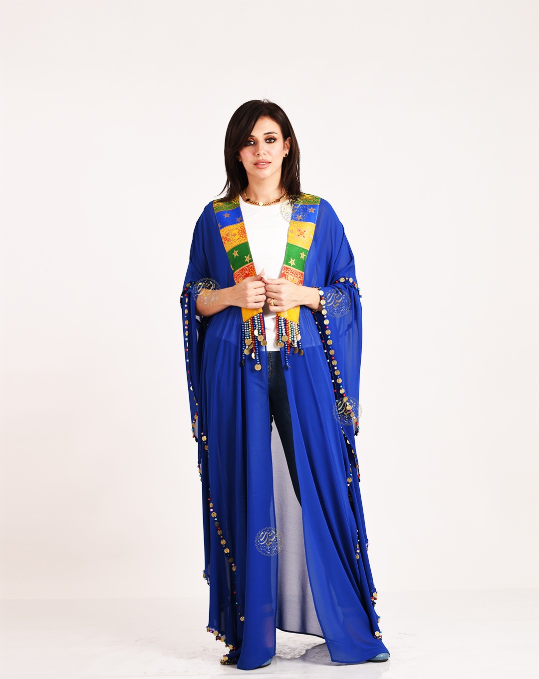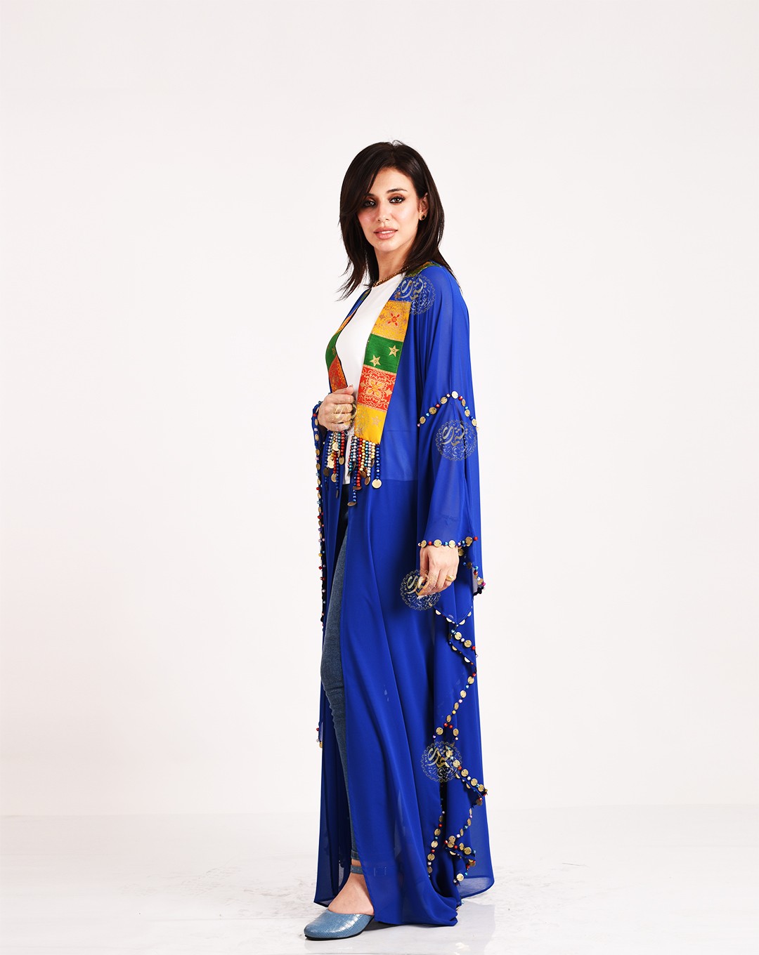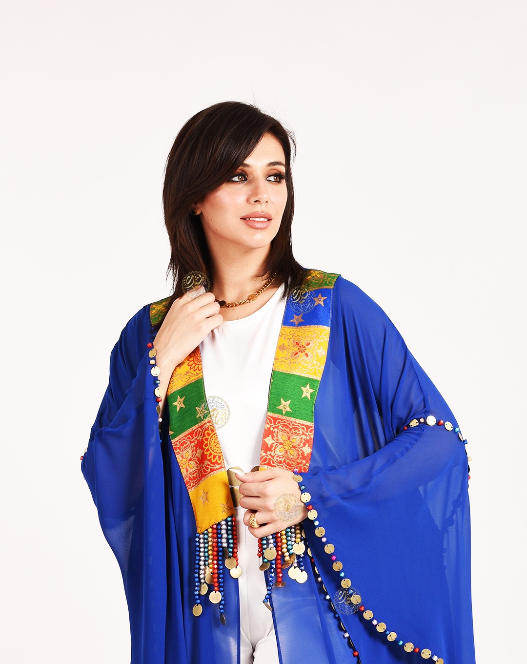 hand-embroidered with brass and colorful beads. An elegant design that adds a