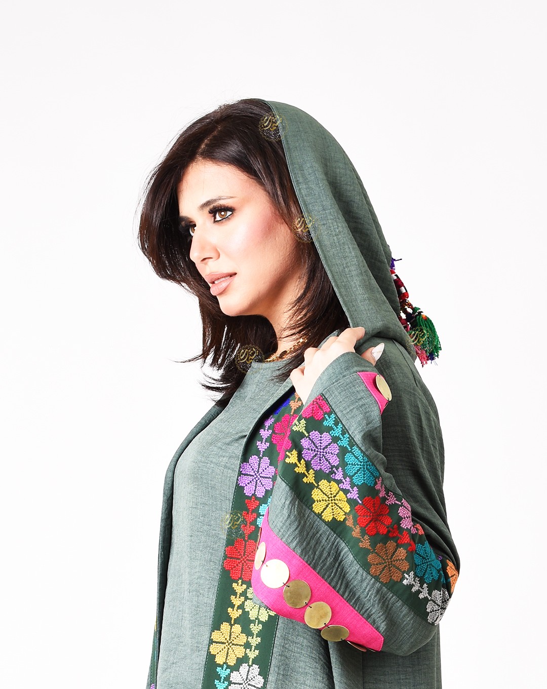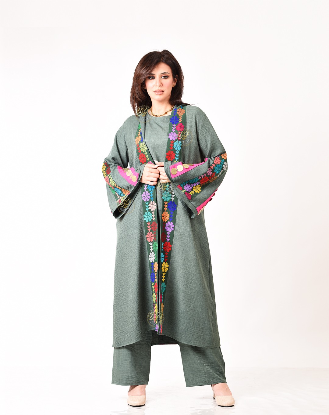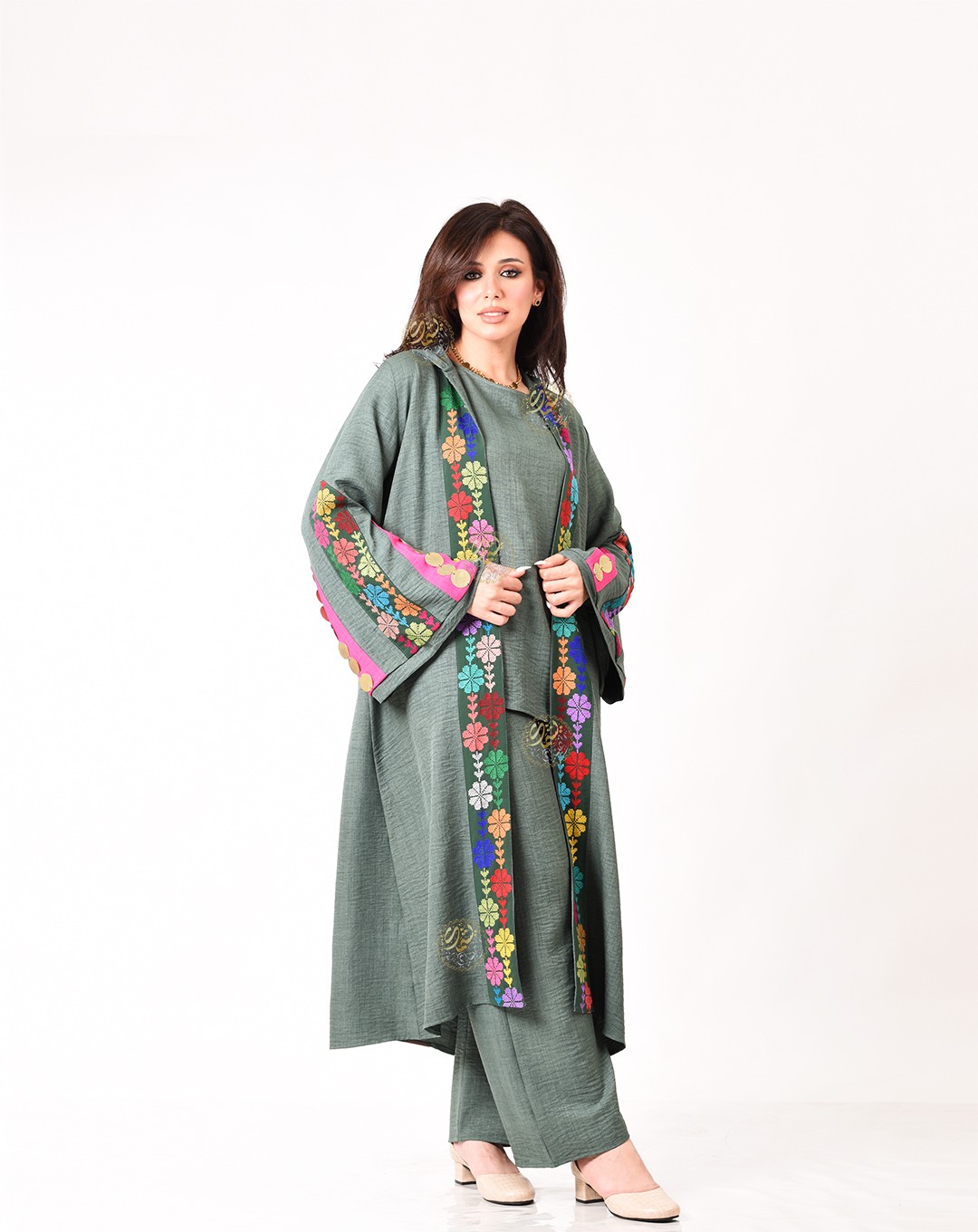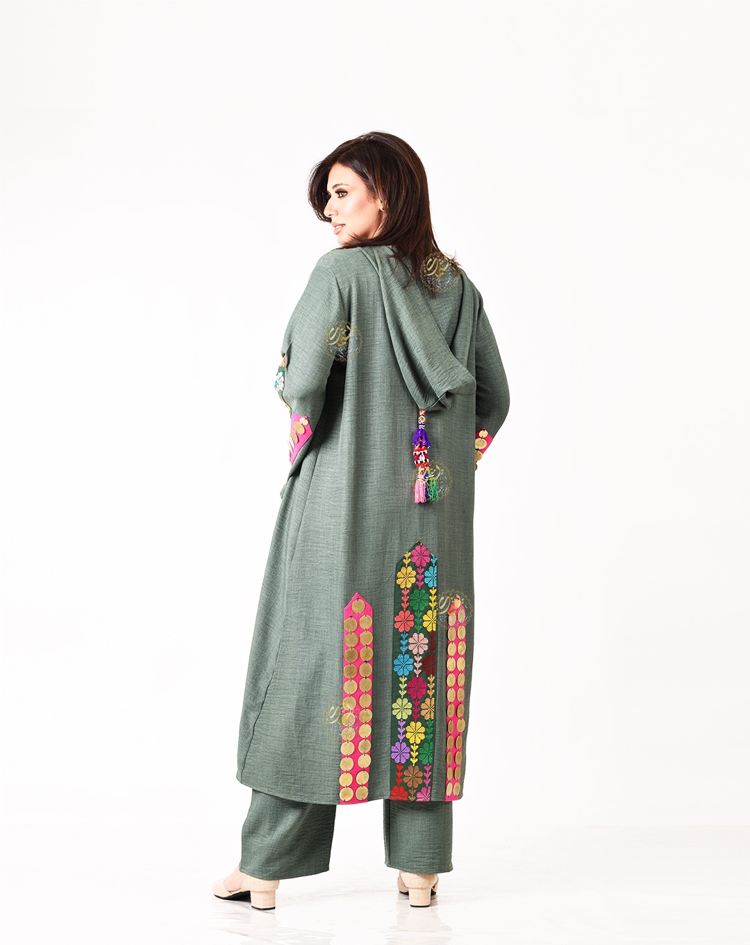 hand-embroidered with copper coins. The set is free size, suitable for all body