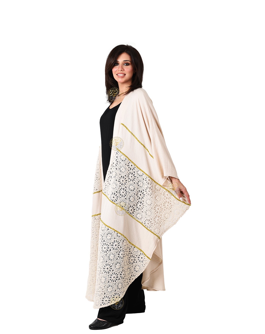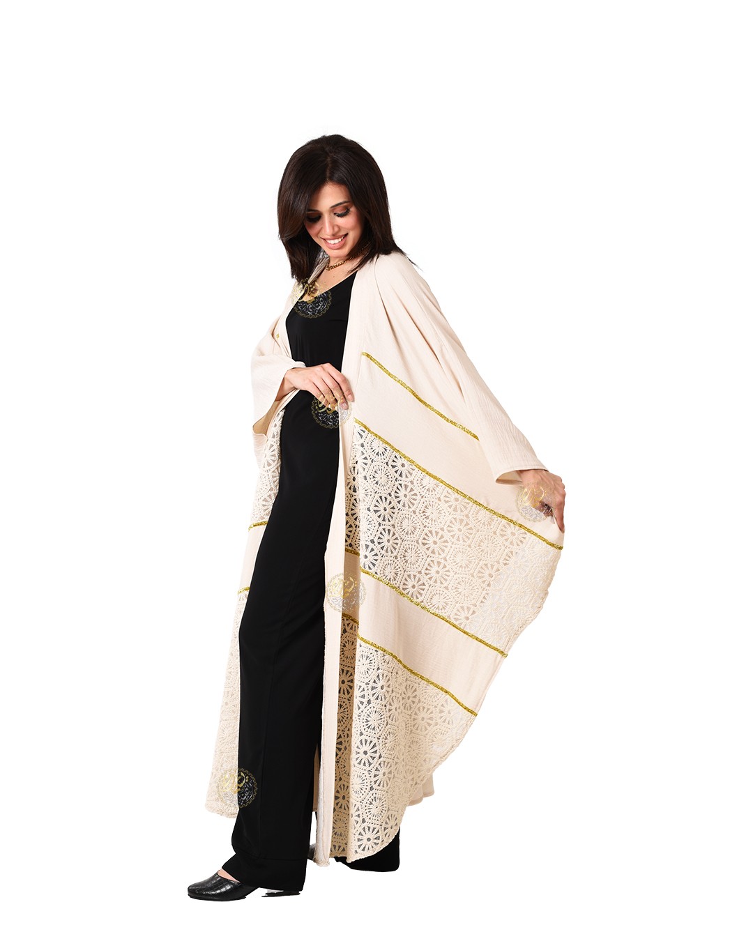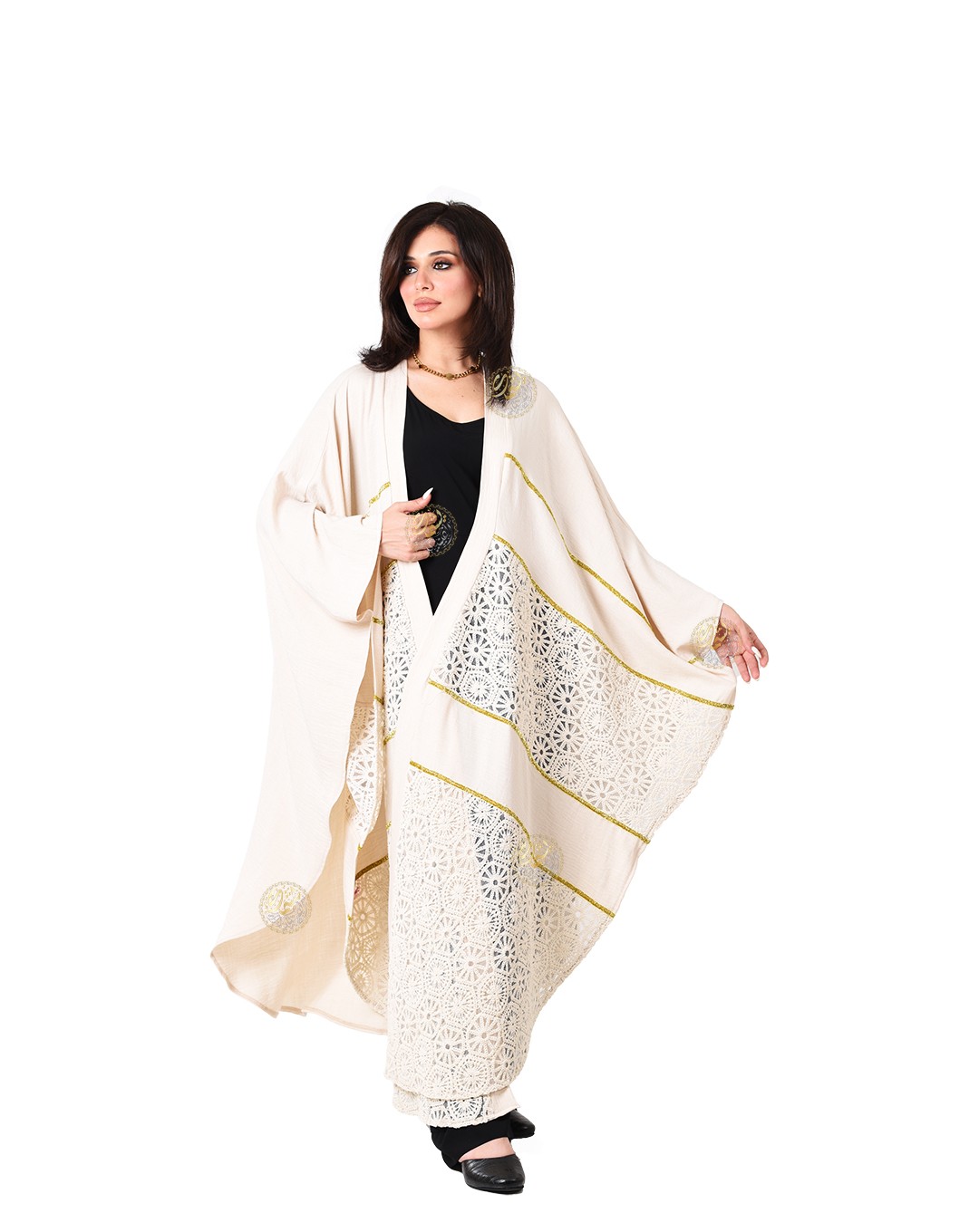 A refined and distinctive cardigan made from pure linen, adorned with elegant accents of Rukama. The size is free size, suitable for all body types.