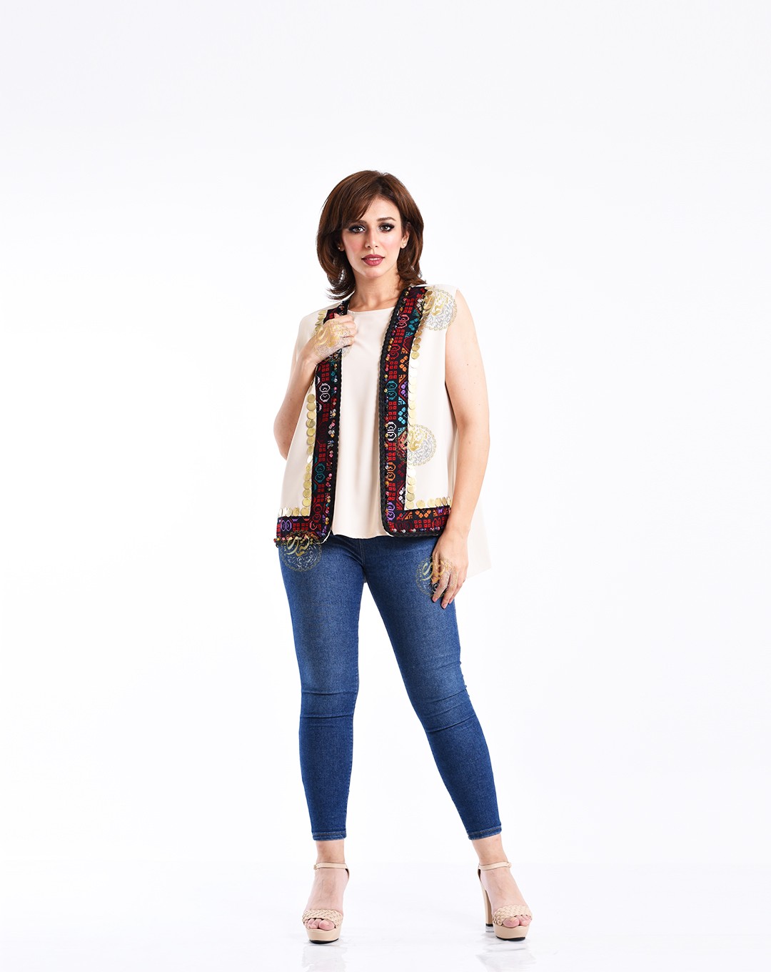 hand-embroidered with exquisite Sinai Etamine, accented with copper coins and