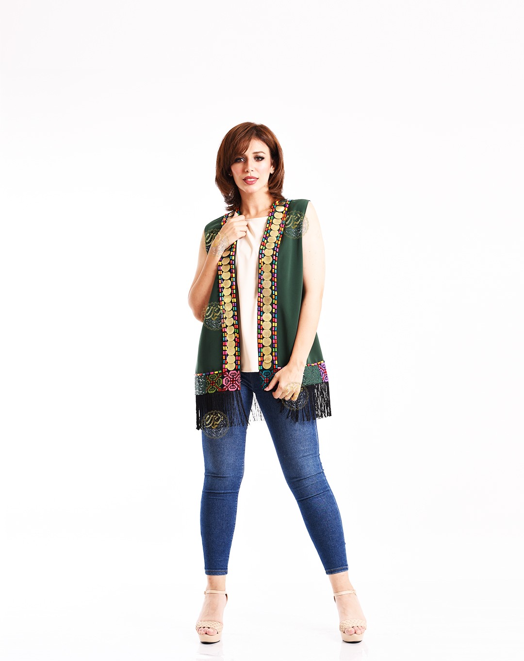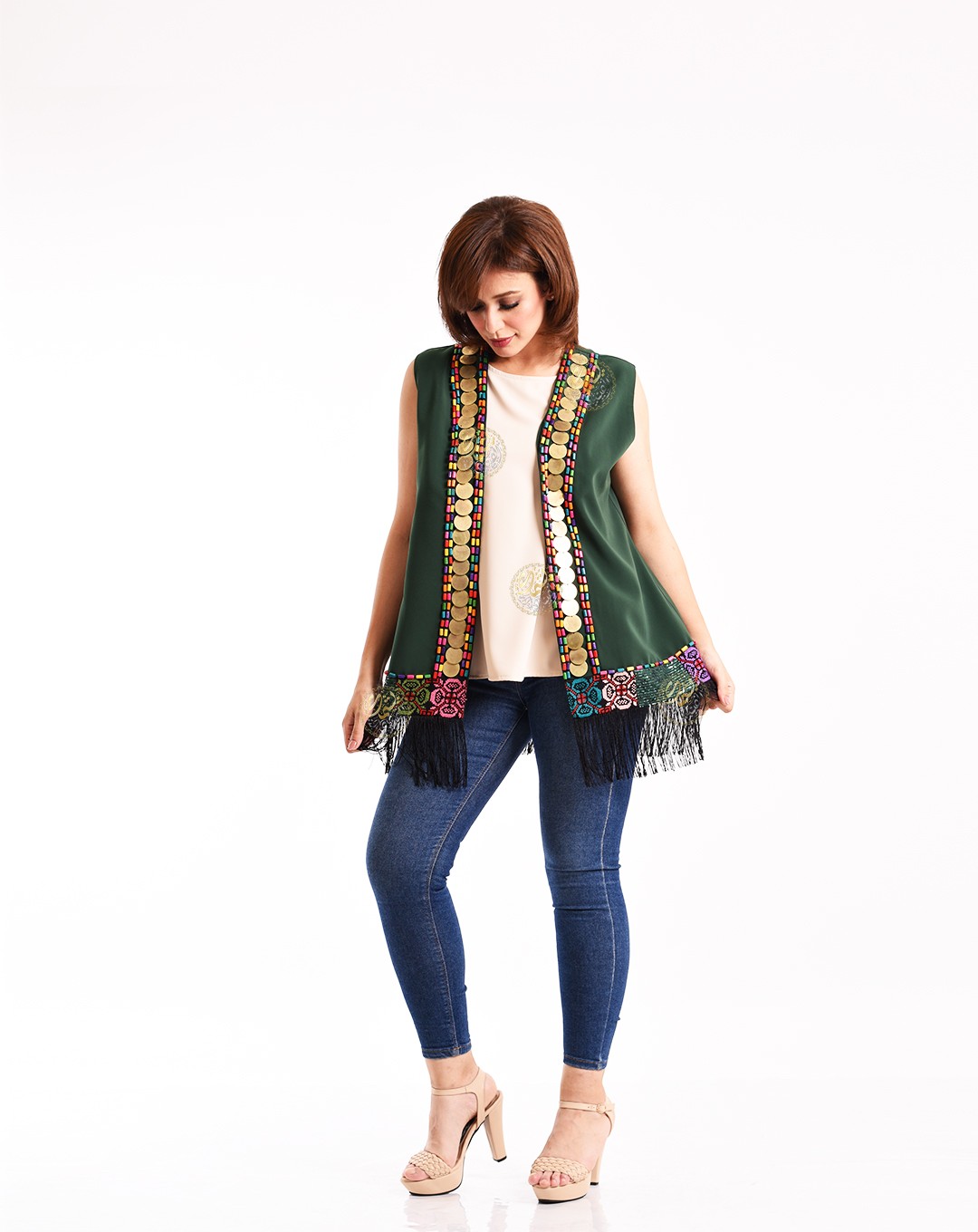 jacket designs, combining different fabrics such as royal crepe, pleated