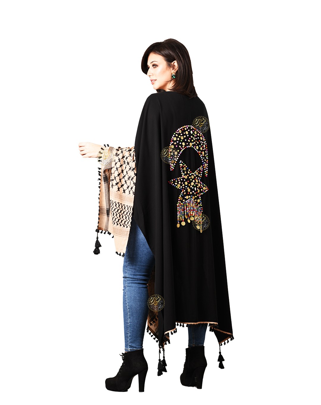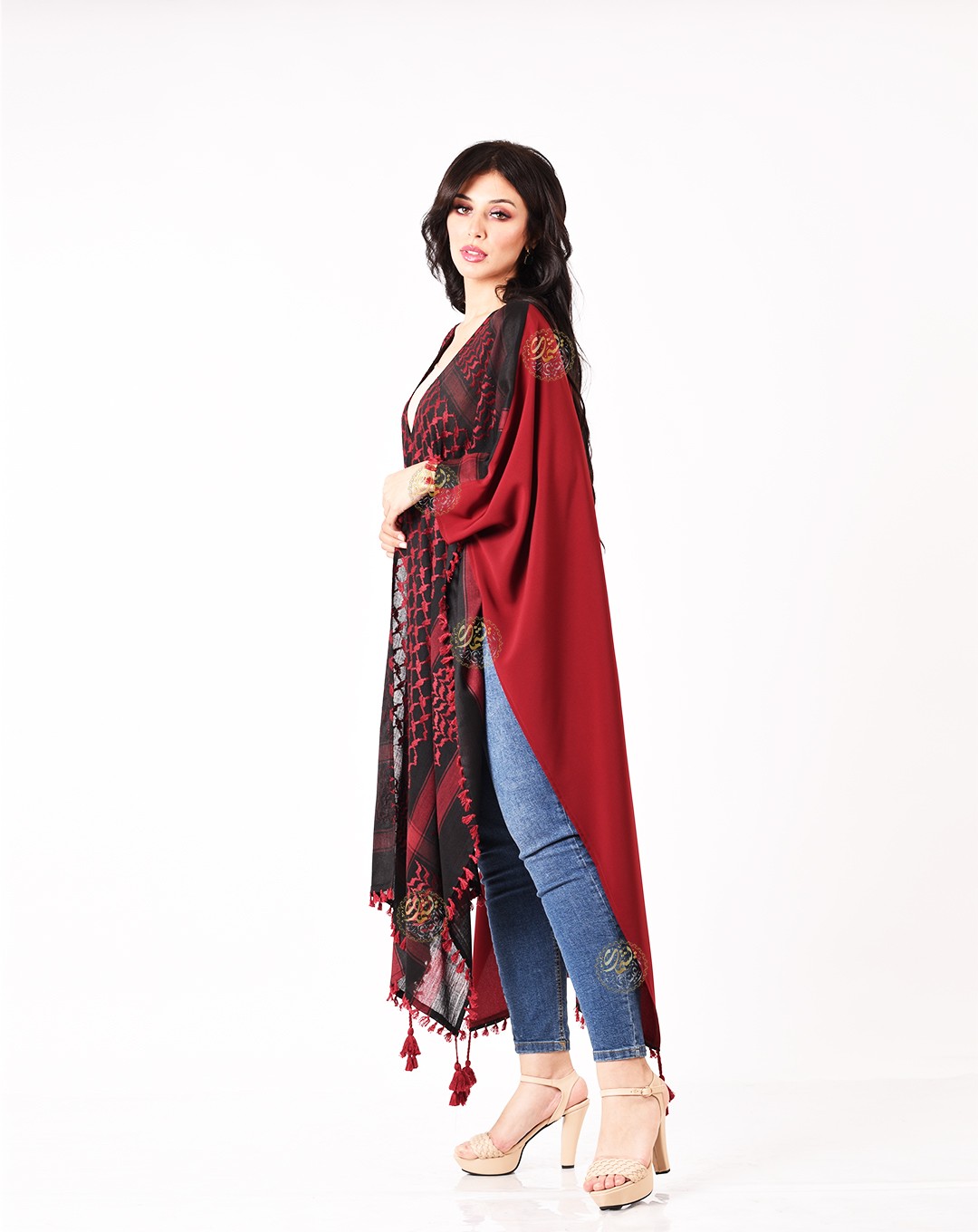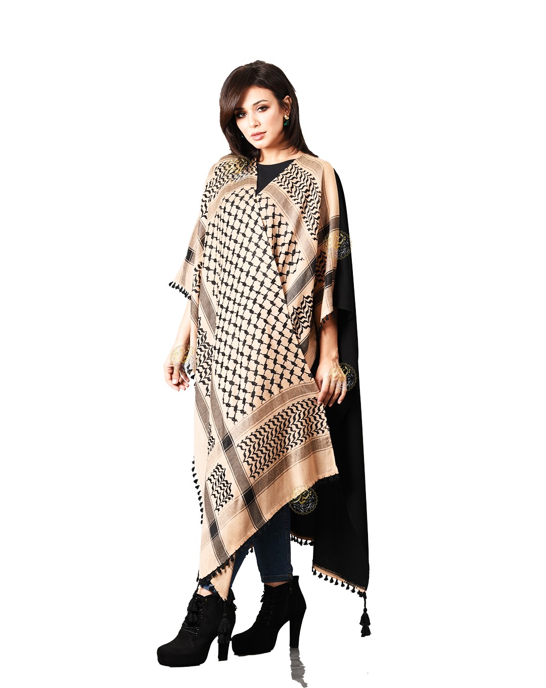 keffiyeh blended with royal crepe fabric in the same shade, featuring a