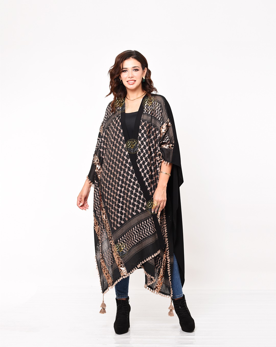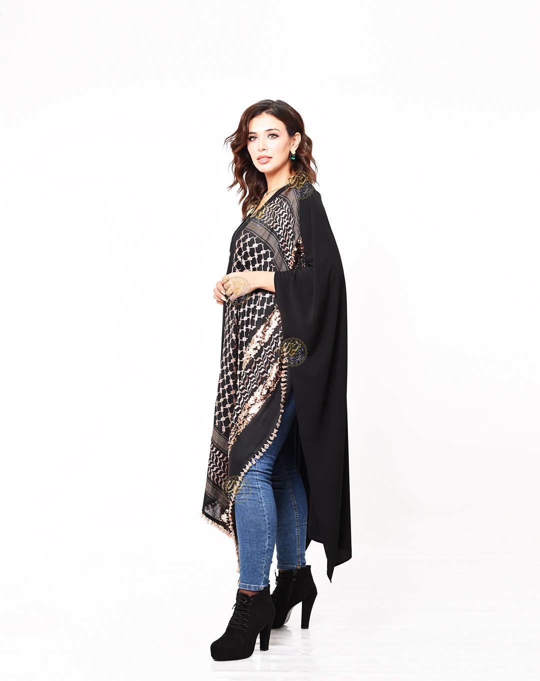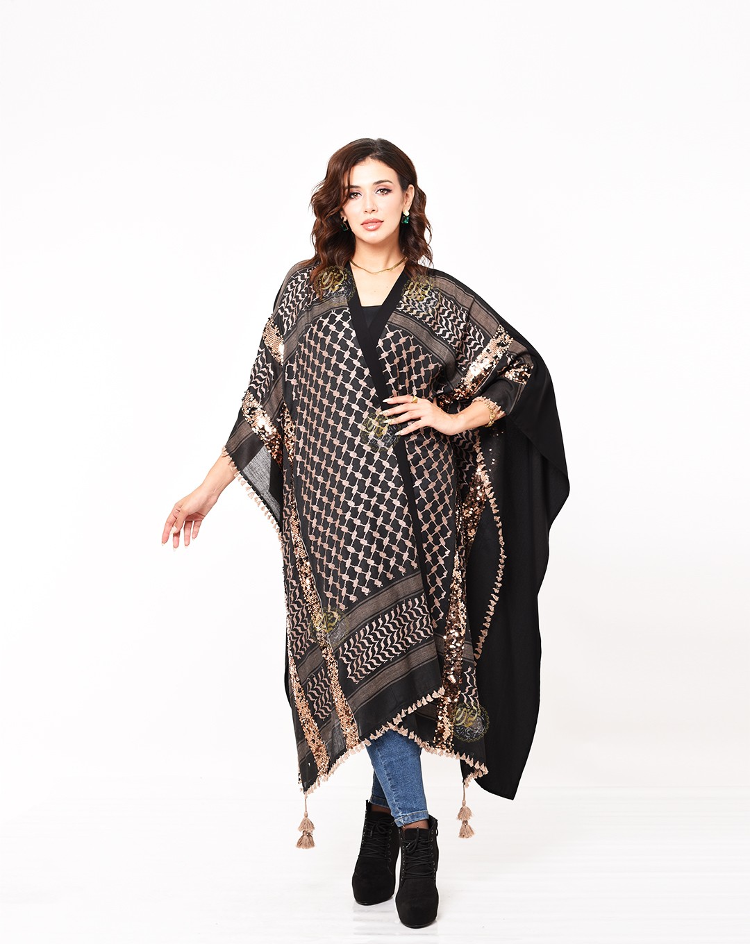 in traditional markets. This design is crafted from a blend of keffiyeh with